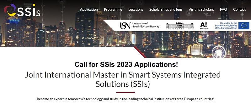 On behalf of the SSIs cohort 9, it is my immense pleasure to inform you that the call for applications is open for the “Erasmus Mundus” MSc degree in “Smart Systems Integrated Solutions” 2023. The program is given jointly by the consortium of Aalto University (Helsinki, Finland), University of South-Eastern Norway (Vestfold, Norway), and Budapest University of Technology and Economics (Hungary). The students admitted are taught their first semester in Helsinki, the second semester in Vestfold, and the third semester in Budapest. For the fourth and last semester, the students will choose one of the three institutions for their master project. The MSc in Smart Systems Integrated Solutions covers microsystems and microelectronics, and how to combine these to form integrated systems. The programme is a continuation of the SSI/ SSI+ programmes, where students have graduated since 2015 with high employment success (industrial and PhD positions, in Europe and outside Europe).