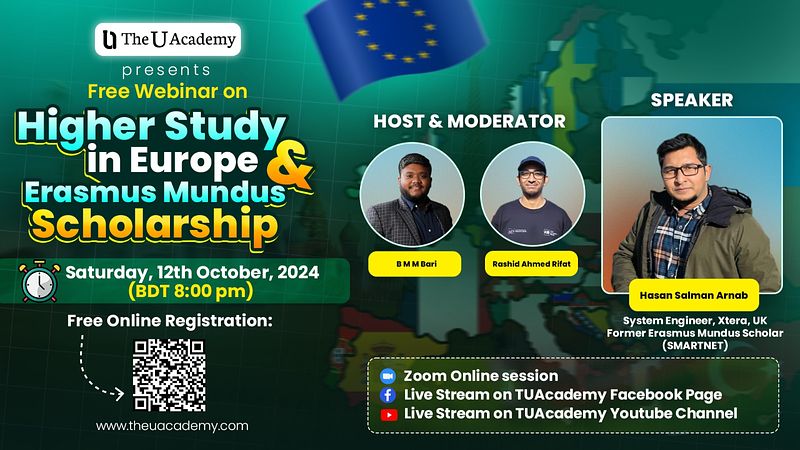 আপনি কি ইউরোপে পড়াশোনার অসাধারণ সুযোগ খুঁজছেন? যোগ দিন আমাদের ওয়েবিনার-এ, যেখানে আপনি পাবেন বিখ্যাত Erasmus Mundus Scholarship সম্পর্কিত গুরুত্বপূর্ণ সব তথ্য!